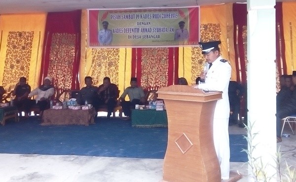 Kata perpisahan dari Rudi Zuhelvis mengatakan, terimakasih kepada semua perangkat Desa yang selama ini telah bekerjasama dalam menyukseskan program Desa, “kalau ada kesalahan dan kesilapan saya selama 18 bulan memimpin disini, saya mohon dimaafkan. Begitu juga dengan semua masyarakat, baik itu pemuda, orangtua serta organisasi yang ada, karena saya sebagai manusia biasa pasti ada kesilapan. Akhirnya, saya ucapkan selamat bertugas kepada pak Ahmad Syuhada, semoga dapat menjalankan tugasnya kedepan dengan baik,” pungkasnya, yang kembali bertugas di UPTD Perhubungan.