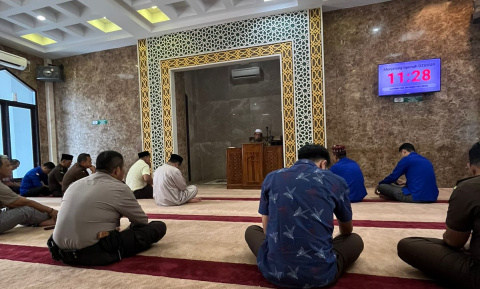 Kegiatan Tausiyah Qobla Dzuhur di Masjid Al-Mizan Kejaksaan Tinggi Riau berjalan aman, tertib, dan lancar.