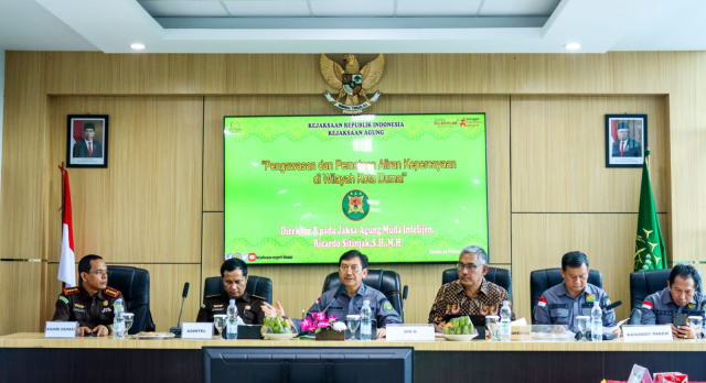 Kegiatan Monitoring & Evaluasi (Monev) serta Kunjungan Kerja Direktur Sosial, Budaya dan Kemasyarakatan (Dir B) Direktorat Sosial, Budaya dan Kemasyarakatan Jaksa Agung Muda Intelijen (JAMINTEL) Kejaksaan Agung Republik Indonesia Ricardo Sitinjak, S.H., M.H bersama Tim Direktorat Sosial, Budaya dan Kemasyarakatan Jaksa Agung Muda Intelijen (JAMINTEL) Kejaksaan Agung Republik Indonesia ke Wilayah Hukum Kejaksaan Negeri Dumai berjalan aman, tertib, dan lancar.***