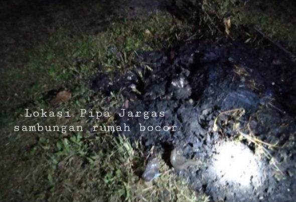 DUMAI, SUARAPERSADA.com - Pipa Jaringan gas (Jargas) PGN sambungan rumah malam kembali terulang bocor di wilayah Kelurahan Tanjung Palas, Kecamatan Dumai Timur, Kota Dumai.