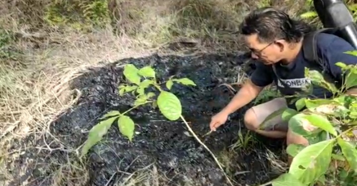 “Konsentrasi limbah yang sangat pekat ini tentunya akan mengganggu daya tumbuh dan produksi tanaman kelapa sawit ini. Hingga dikedalaman satu meter dari permukaan tanah masih kita temukan gumpalan limbah,” beber Mattheus.