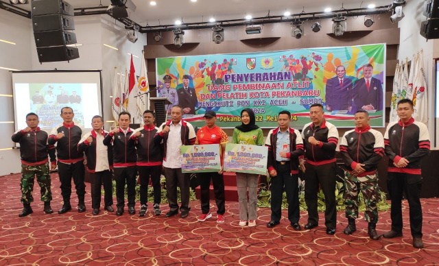 Dalam penyerahan uang pembinaan atlit dan pelatih kota Pekanbaru disaksikan oleh Asisten II Pemko Pekanbaru Ingot Ahmad Hutasuhut, Ketua KONI Kota Pekanbaru M. Yasir, Kadispora Kota Pekanbaru Hazli Fadriyanto, Kadispers Yon Arhanud Lettu Arh. Hendrik, SH., Kadispers AU Letkol Adm. Yuniar Budiharto Fary, SH dan Ketua masing-masing Cabor PON XXI Aceh-Sumut.