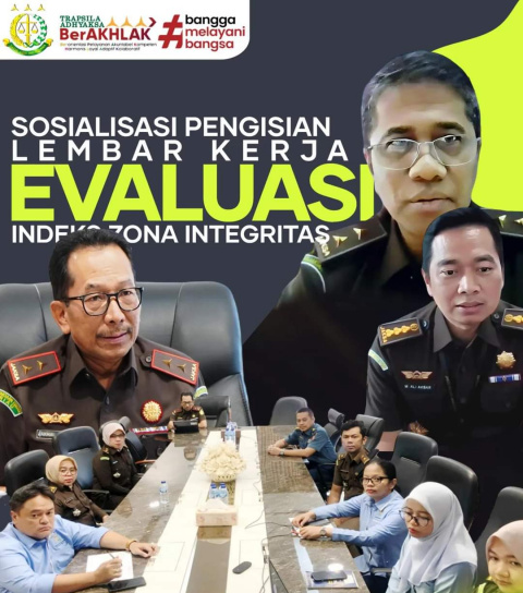 Kepala Kejaksaan Tinggi Riau, Akmal Abbas, S.H., M.H bersama Tim Kerja Efektif Wilayah Birokrasi Bersih Melayani (WBBM) Kejaksaan Tinggi Riau Tahun 2024, mengikuti Sosialisasi Pengisian Lembar Kerja Evaluasi (LKE) Indeks Zona Integritas (ZI) menggunakan Aplikasi secara virtual, bertempat di Ruang Rapat Kepala Kejaksaan Tinggi Riau, Selasa (20/2).