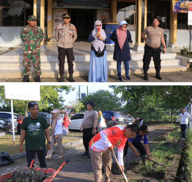 Camat Rumbai Vemi Herliza, TNI, Polri, Dispora, dan Diskominfotiksan menggelar Gerakan Cinta Pekanbaru dengan melaksanakan gotong royong, pada, Minggu tanggal 19 Mei 2024, lalu.