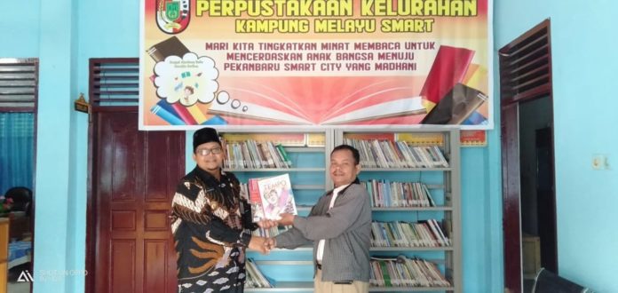 Penyerahan bantuan buku tersebut berlangsung di Perpustakaan Kelurahan Kampung Melayu Smart, kantor Lurah Kampung Melayu Jalan Ketitiran No.20 Kecamatan Sukajadi Pekanbaru, Kamis (30/1).