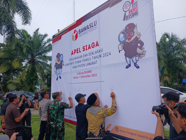 Dalam apel siaga pengawasan dan deklarasi kampanye damai pemilu Tahun 2024 pagi ini, Bawaslu Langkat menghadirkan para pengurus partai yang ada, dan juga di ikuti para Panwascam (panitia pengawas kecamatan ) yang ada di kabupaten Langkat.