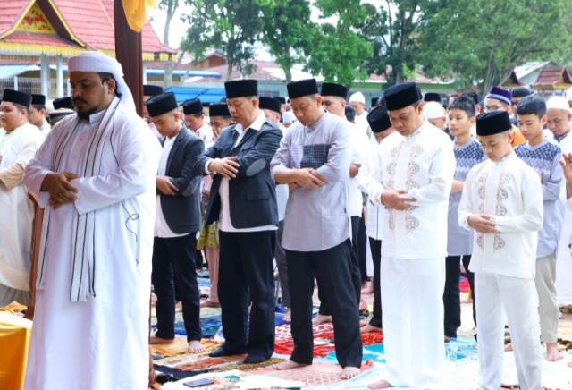 melaksanakan Shalat Idul Fitri 1444 Hijriah di Lapangan Bukit Putera, Kecamatan Senapelan Pekanbaru, Sabtu (22/4/2023).