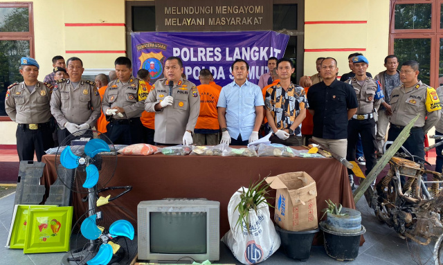 Dalam penjelasannya, Kapolres Langkat AKBP. Faisal Rahmat HS, S.I.K, SH, MH didampingi Kabag Ops Polres Langkat AKP. Sahrial Sirait, SH, MH, Kasat Reskrim AKP. Dedi Mirza, S.I.K, MM, Kasi Propam AKP. Abed Nebo, SH, MH serta Kasi Humas Polres Langkat AKP Rajendra Kusuma.