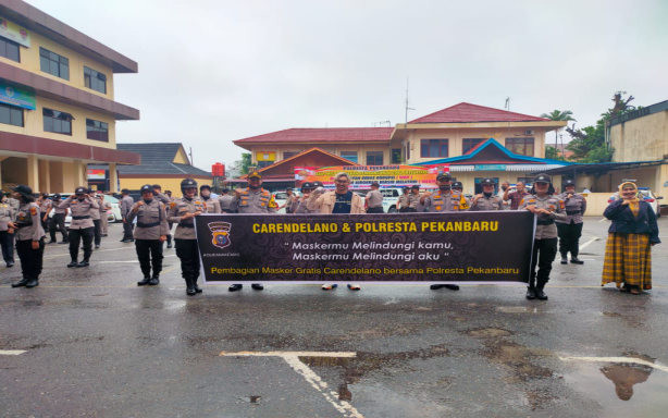Polresta Pekanbaru Gandeng Artis Ibu Kota Bagikan Maske Secara Gratis
