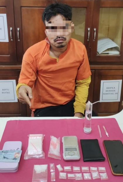 Bersama tersangka turut diamankan Barang Bukti (BB) 15 Paket diduga Narkotika jenis Shabu yang dibungkus dengan Plastik Bening, 1 buah timbangan, 1 buah bong, 1 buah kaca pirek, 1 unit hp samsung,1 buah sendok shabu yang terbuat dari pipet plastik, 2 ball plastik bening pembungkus.