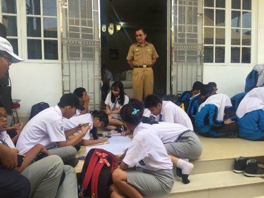 ROHIL, SUARAPERSADA.com – Usai dibawa berkeliling kota Bagansiapiapi dalam rangka sosialisasi sapta pesona yang ber tajuk “Ayo ke-Bagansiapiapi” pada Selasa 06 Maret 2018 sekitar pukul 08.30 WIB pagi tadi, Sekretaris Daerah (Sekda) Kabupaten Rokan Hilir, Drs Surya Arfan mengajak para siswa dan siswi untuk melukis hasil kunjungan di beberapa ‘spot heritage, atau tempat-tempat bersejarah di sekitar kota Bagansiapiapi, serta melihat bakat melukis dari para siswa dan siswi.