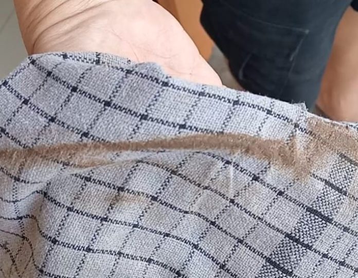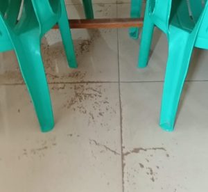 Ia juga menunjukkan meja-meja didalam kedai juga tampak menghitam dilapisi debu sembari ia membersihkan debu dengan mengepel pakai kain pengepel tampak menghitam tebal lengket di kain pengepel meja.